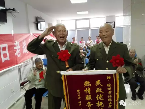 老戰(zhàn)士將一面寫有“民政優(yōu)撫情暖老兵熱情服務(wù)親如一家”的錦旗送到副院長(zhǎng)沈青等工作人員手中,以感謝黨和政府對(duì)他們的關(guān)心與關(guān)愛(ài),感謝民政醫(yī)院工作人員對(duì)他們無(wú)微不至的服務(wù)和照顧。
