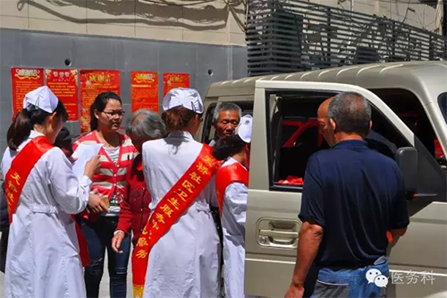 副院長(zhǎng)沈青攙扶老人安全乘上返回的專車
