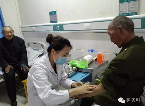 醫(yī)務(wù)人員每天為功臣們檢測(cè)血壓、血糖等情況,準(zhǔn)確掌握了每位老人的身體狀況,為他們制定了個(gè)性化的、可行的診療方案。