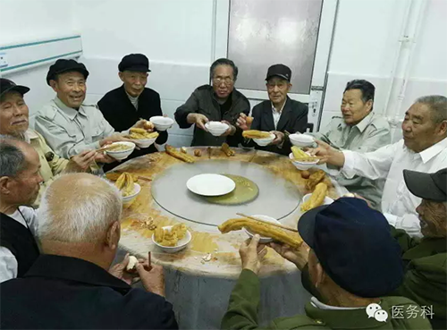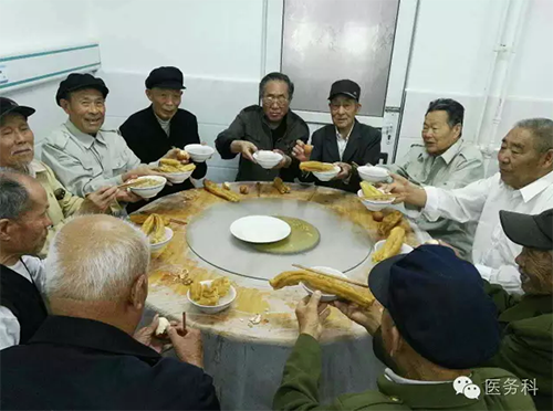 在療養(yǎng)即將結(jié)束的當(dāng)天早上,老戰(zhàn)士們依依不舍,以飯代酒相互道別,并互祝大家身體健康、闔家幸福...........