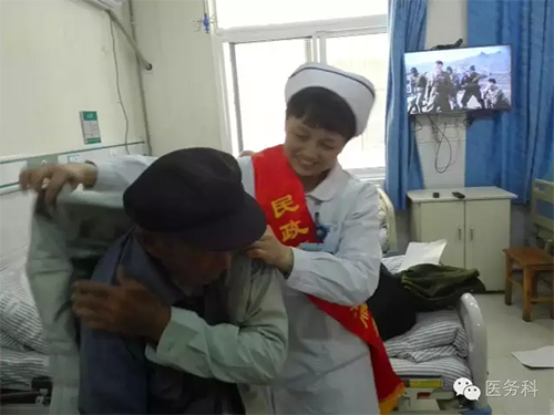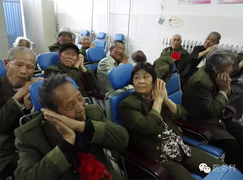 當(dāng)這些革命功臣們從黨支部書記、副院長(zhǎng)沈青手里接過(guò)裝滿日用品的功臣慰問(wèn)包時(shí)激動(dòng)的熱淚盈眶!深情地說(shuō):“感謝黨和政府及領(lǐng)導(dǎo)對(duì)我們的關(guān)愛(ài)!我們一定要好好地活著,盡量不給國(guó)家和你們添麻煩!給社會(huì)減輕負(fù)擔(dān)!”多么樸實(shí)的話語(yǔ),著實(shí)讓人感動(dòng)!全院領(lǐng)導(dǎo)和醫(yī)務(wù)人員個(gè)個(gè)忙得不可開(kāi)交!在照顧現(xiàn)有病人的同時(shí)還要照顧好這些“國(guó)寶級(jí)”的功臣們!他們各負(fù)其責(zé)、耐心細(xì)致的照顧好每一個(gè)老人!