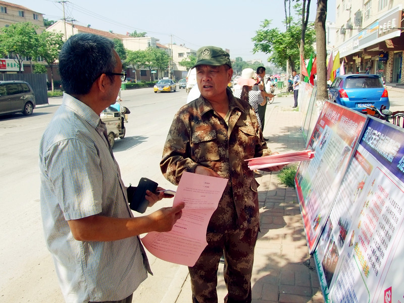 中國黃淮網(wǎng)江蘇徐州616日訊(老藤 亞東 許沖)“強化安全發(fā)展觀念,提升全民安全素質(zhì)”是2016年“全國安全生產(chǎn)月”主題。為前面貫徹落實好安全月的宣傳活動,616日上午,徐州下淀社區(qū)工作人員走上街頭向市民宣講安全月活動內(nèi)容。