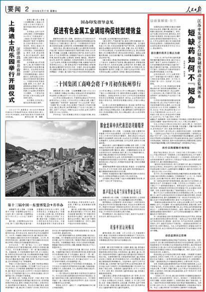 人民日?qǐng)?bào):江蘇率先建立藥品儲(chǔ)備制度監(jiān)測(cè)體系