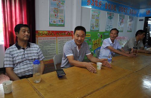 和平街道辦事處主任溫成(左二)介紹情況