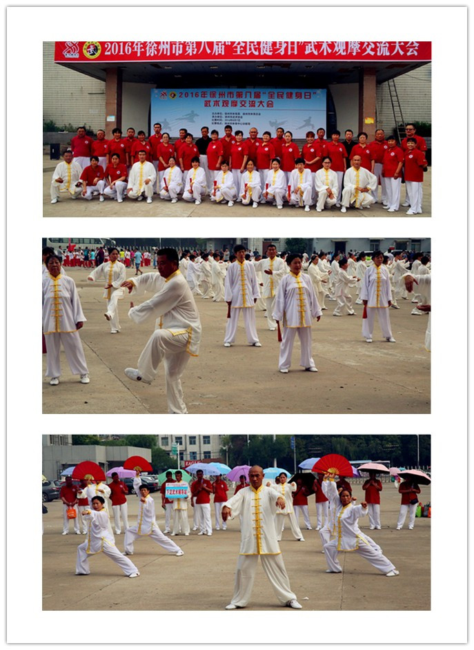 中國黃淮網(wǎng)江蘇徐州8月8日訊(老藤 方會(huì)莉)由徐州市體育局、徐州市體育總會(huì)、徐州市武術(shù)協(xié)會(huì)共同舉辦的2016年徐州市第八屆“全民健身日”武術(shù)交流觀摩大會(huì)8月7日上午在徐州市體育中心開幕。來自各縣(市)區(qū)武術(shù)協(xié)會(huì)、市武協(xié)會(huì)、市武協(xié)團(tuán)體會(huì)員、鄉(xiāng)鎮(zhèn)(街道)、社區(qū)、武術(shù)館(校)、在徐各高校、老年大學(xué)、市屬各企事業(yè)單位及社會(huì)團(tuán)體、武術(shù)組織近30個(gè)單位參與。徐州下淀社區(qū)武術(shù)輔導(dǎo)隊(duì)的“太極扇”榮獲交流大會(huì)一等獎(jiǎng)和優(yōu)秀組織獎(jiǎng)