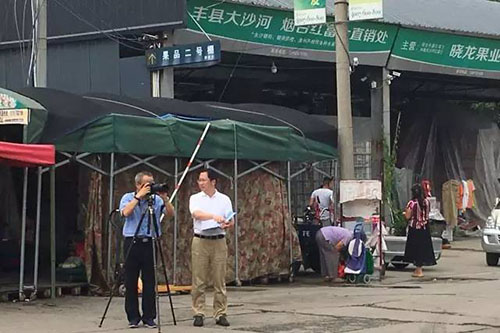 一行人考察了市場交易區(qū)的交易情況并到市場電子商務中心參觀,隨行專業(yè)人員全程拍攝記錄,市場工作人員對“城市廚房”交易平臺交易流程進行現(xiàn)場演示。