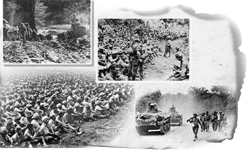 圖③:1942年4月,菲律賓巴丹半島上的美菲戰(zhàn)俘近8萬人,在被日軍強(qiáng)行押解途中遭到殘忍虐待,約1.5萬人喪生,史稱“巴丹死亡行軍”。