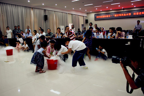 這次科普進(jìn)軍營(yíng)活動(dòng),新沂市科協(xié)邀請(qǐng)了新沂市部分優(yōu)秀青少年科技輔導(dǎo)員、科技創(chuàng)新獲獎(jiǎng)學(xué)生代表作事跡報(bào)告,部隊(duì)官兵和部隊(duì)家屬子女帶來(lái)了中國(guó)科學(xué)技術(shù)出版社出版的“十三五”國(guó)家重點(diǎn)出版物規(guī)劃項(xiàng)目書籍《中國(guó)古代重要科技發(fā)明創(chuàng)造》和“科學(xué)啟蒙教育”實(shí)驗(yàn)器材等。新沂市小牛頓思維館還帶來(lái)了有趣的科普表演秀節(jié)目,博得現(xiàn)場(chǎng)官兵和小朋友的熱烈掌聲。