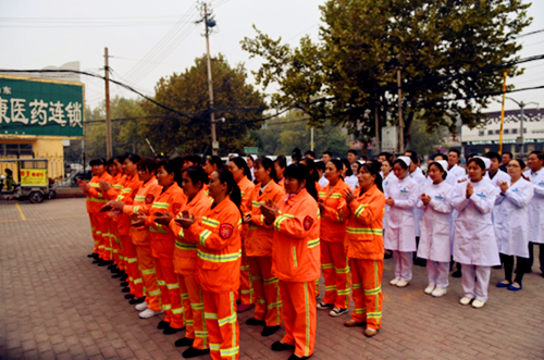 圖為滕州環(huán)衛(wèi)工人免費(fèi)體檢啟動(dòng)儀式現(xiàn)場
