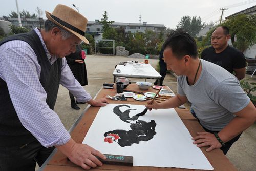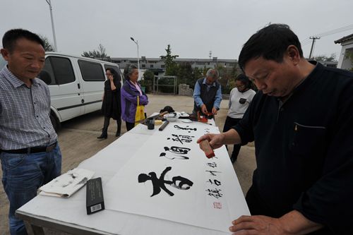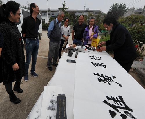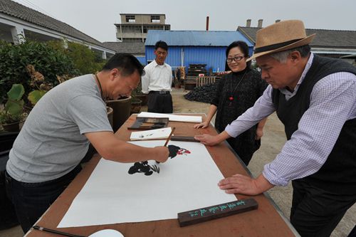 中國黃淮網(wǎng)消息(尹。 1017日,由新疆維吾爾自治區(qū)奎屯市文聯(lián)組織的文化藝術(shù)交流團(tuán)在中國黃淮網(wǎng)總編輯王艷,徐州市美術(shù)家協(xié)會副主席、黃淮書畫院常務(wù)副院長尹成,徐州市美術(shù)家協(xié)會副秘書長、黃淮書畫院執(zhí)行院長華敬福,徐州市美術(shù)家協(xié)會副秘書長羅東風(fēng)、中國黃淮網(wǎng)副總編輯尹健的陪同下,到新沂市參觀交流。新疆奎屯市書協(xié)主席胡辰強(qiáng)、原奎屯市書協(xié)主席劉光恒、奎屯市書協(xié)副主席吳德新等一行十余人考察了新沂窯灣美術(shù)館、新沂萬昌綠豆燒酒業(yè)有限公司及窯灣古鎮(zhèn)文化景觀,并在萬昌綠豆燒酒業(yè)有限公司開展了書畫筆會活動。