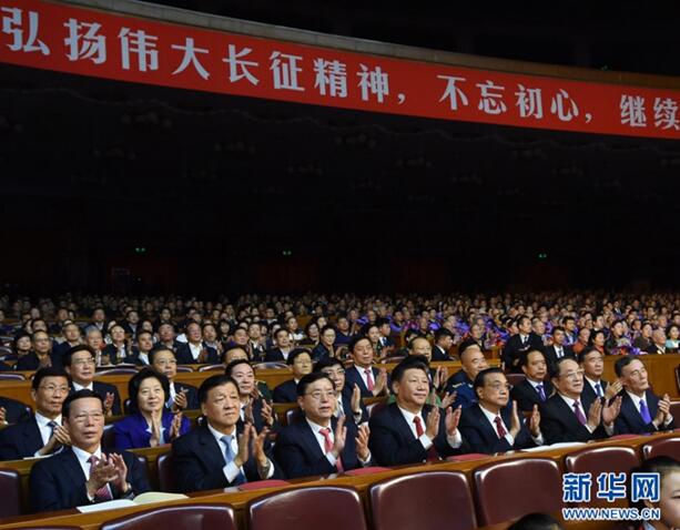 2016年10月19日,紀(jì)念紅軍長征勝利80周年文藝晚會(huì)《永遠(yuǎn)的長征》在北京人民大會(huì)堂舉行。習(xí)近平、李克強(qiáng)、張德江、俞正聲、劉云山、王岐山、張高麗等黨和國家領(lǐng)導(dǎo)人,與首都3000多名群眾共同觀看演出。新華社記者 饒愛民 攝
