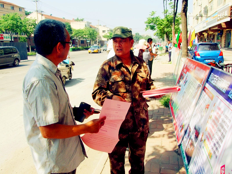 付化友同志聽到消息,及時趕到現(xiàn)場。“各位居民,都是低頭不見抬頭見近鄰,有話好好說,聚眾鬧事是違法行為,矛盾糾紛可以依法來處理,大家切不可沖動,因違法斗毆而遺憾終身……”一席入情入理的話,讓40多人乖乖地放下手中的“武器”、撤出“戰(zhàn)場”。直到看著他們?nèi)侩x開工地,付化友同志懸著的一顆心才算落地。而后,付化友同志實地進行勘測,了解情況,修正誤差,及時化解了王、張兩家因建房而引發(fā)的矛盾糾紛。