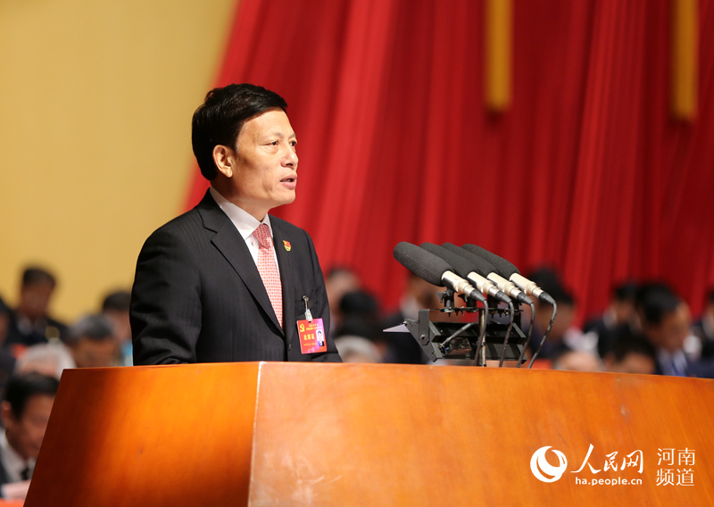 謝伏瞻代表中國(guó)共產(chǎn)黨河南省第九屆委員會(huì)向大會(huì)作報(bào)告