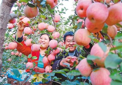 中莊鎮(zhèn)村民在采摘蘋(píng)果。