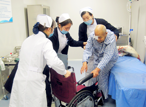 圖為滕州啟明眼科醫(yī)院醫(yī)護(hù)人員在為老年眼疾患者孫景河服務(wù)