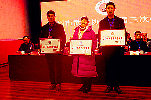 中國黃淮網(wǎng)訊(老藤)2017年1月8日上午九時,徐州市武術(shù)協(xié)會六屆三次會議在中匯國際會議中心隆重召開,來自五區(qū)六縣200多名優(yōu)秀運動員、教練員、裁判員參會。市武協(xié)常務(wù)主席兼秘書長柳建做了2016年度協(xié)會工作報告,表彰了為發(fā)展和弘揚徐州武術(shù)事業(yè)做出積極貢獻的團隊、集體和個人。下淀社區(qū)太極拳輔導(dǎo)站榮獲2016年“突出貢獻獎”,這也是唯一的一個社區(qū)武術(shù)團隊獲此殊榮;社區(qū)黨委書記付化友同志被評為先進個人;會上,下淀社區(qū)大學(xué)生村官付海石代表太極拳輔導(dǎo)站作了經(jīng)驗介紹。