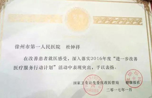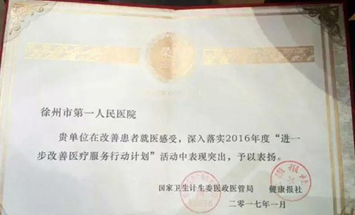 徐州市第一人民醫(yī)院喜獲國(guó)家衛(wèi)生計(jì)生委醫(yī)政醫(yī)管局表彰