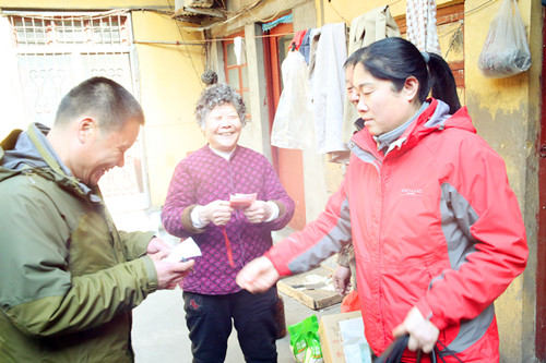 社區(qū)為這些老同志過年準備了過節(jié)禮物和500元現(xiàn)金。班子成員每到一處,都向這些老人噓寒問暖,把手言歡,仔細地詢問身體狀況、生活上的困難和需要,鼓勵他們保持一個好的心情。