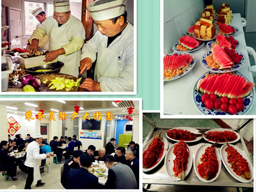 各行車公寓提前制定了節(jié)日飯菜供應(yīng)食譜,采購了充足的禽類、肉類、魚類等各種食材以及各種蔬菜進(jìn)行加工制作;春節(jié)必不可少的水餃?zhǔn)浅藙?wù)員最喜愛的主食,公寓食堂工作人員提前制作了豬肉、羊肉、牛肉、魚肉、三鮮等各種餡心的水餃,滿足不同人員的需要。