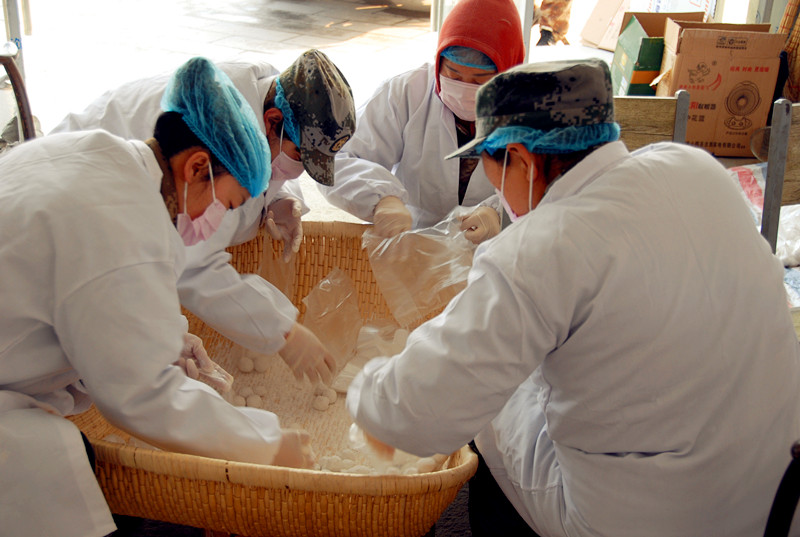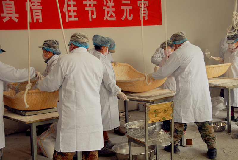 為把好事辦好辦實,27日,社區(qū)就提前購進了30袋糯米粉、黑芝麻元宵餡20箱,準備了桌子、焊接滑輪、水桶、大盆、小盆、不銹鋼鐵篩子、白大褂、衛(wèi)生帽、口罩、膠手套、小灶壘等滾制元宵的工具。29日八點,元宵制作開始,只見幾十名白大褂熟練地倒面粉、將元宵餡蘸水,接著開始推動簸籃,就這樣反反復復地蘸水、滾動,連續(xù)操作十幾遍后,一個個滾圓的元宵才算大功告成。再看這些制作元宵的高手們,個個成了“白面書生”。就這樣,制作現(xiàn)場歡聲笑語,滾元宵的滾元宵、裝袋的裝袋、往各個村民小組送元宵的汽車都是忙得團團轉(zhuǎn),雖然大伙連喝茶也顧不上,但是他們的臉上依然洋溢著分享元宵佳節(jié)的快樂笑容。
