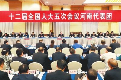 3月5日下午,河南代表團舉行全體會議,審議政府工作報告。⑨7本報記者董亮杜小偉攝