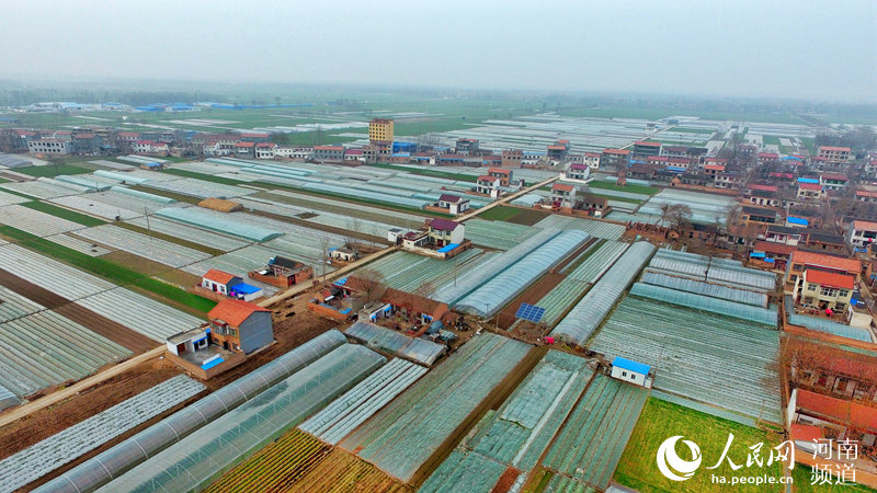 圖為蘭考縣紅廟鎮(zhèn)的蔬菜大棚,縣里發(fā)揮農(nóng)業(yè)合作社作用,引導群眾脫貧致富;魜喥 攝