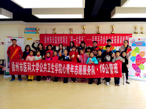 中國黃淮網(wǎng)訊(老藤 葉忠惠)325,風(fēng)和日麗,春風(fēng)宜人。在徐州下淀社區(qū)青少年之家活動中心里,一場“手牽手齊步走公益拓展訓(xùn)練營”正在熱鬧非凡地進(jìn)行著。這是由團(tuán)徐州市鼓樓區(qū)委青少年之家綜合服務(wù)平臺、徐州下淀社區(qū)七彩陽光青少年之家服務(wù)中心主辦,徐州醫(yī)科大學(xué)公共衛(wèi)生學(xué)院心青年志愿服務(wù)隊、公共衛(wèi)生學(xué)院16公管班聯(lián)辦的“同一片藍(lán)天”公益創(chuàng)投項目活動, 20多名流動人口子女參與。