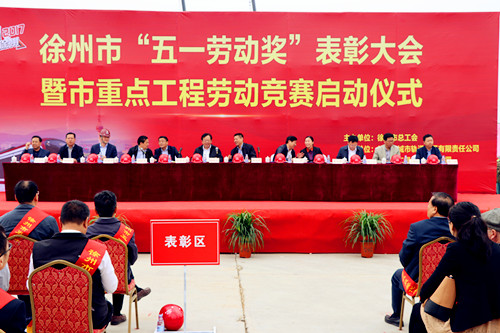 中國(guó)黃淮網(wǎng)訊(老藤)425上午,徐州市五一勞動(dòng)獎(jiǎng)表彰大會(huì)暨市重點(diǎn)工程勞動(dòng)競(jìng)賽啟動(dòng)儀式在軌道交通2號(hào)線文博園站施工現(xiàn)場(chǎng)舉行。市委書記張國(guó)華發(fā)來(lái)賀信,市委副書記楊時(shí)云講話,市人大常委會(huì)副主任束志明、副市長(zhǎng)趙興友、市政協(xié)副主席王軍等出席。