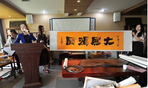 成立大會結(jié)束后,現(xiàn)場舉行了會員書畫作品拍賣會。拍賣會由江蘇宣和拍賣有限公司按正規(guī)拍賣程序主持運作,在一個多小時的拍賣過程中,20多幅書畫作品中被與會書畫家和商家拍走。