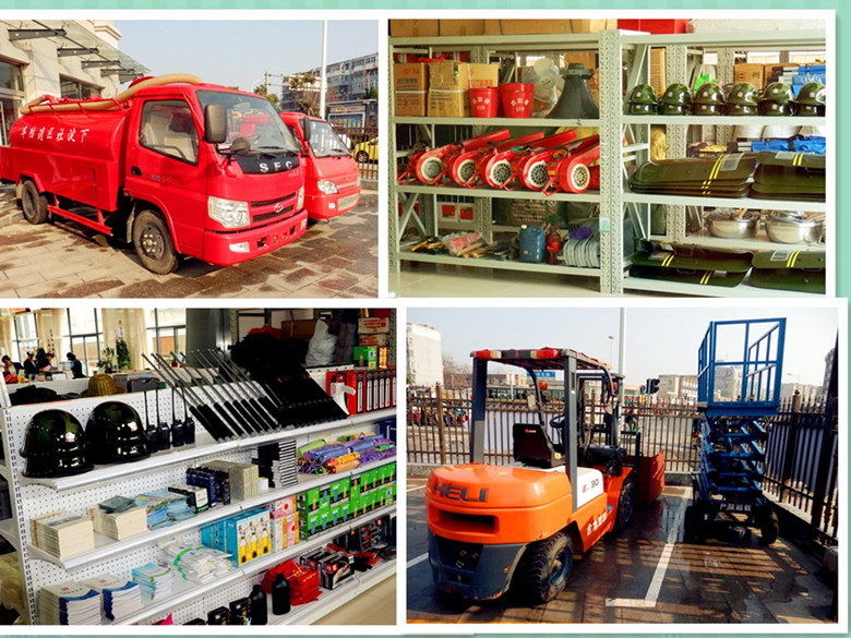 購進了消防車、升降機、照明燈等全部消防救災器材