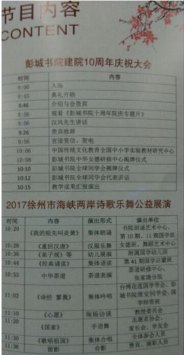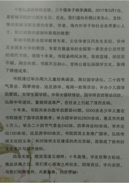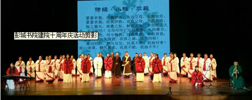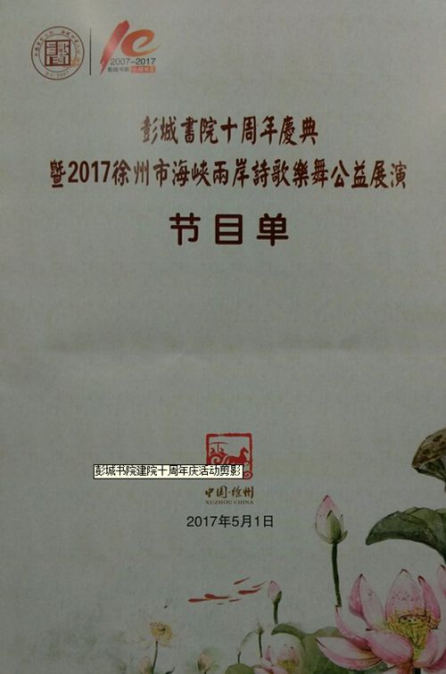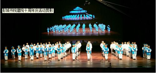 彭城書院資料:2017年5月1日上午,彭城書院十周年慶典暨2017徐州市海峽兩岸詩(shī)歌樂(lè)舞公益展演在徐州音樂(lè)廳隆重舉行。慶典活動(dòng)上,《中國(guó)傳統(tǒng)文化教育全國(guó)中小學(xué)實(shí)驗(yàn)教材》彭城書院研究中心、彭城書院中華女德研修中心、彭城書院全球同學(xué)會(huì)正式揭牌。