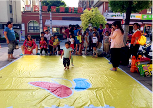 活動(dòng)邀請(qǐng)了紅黃藍(lán)親子園的幼兒老師、孩子家長(zhǎng)、社區(qū)志愿者們一起與孩子們共讀“大耳朵與小白兔”、“我會(huì)保護(hù)自己”、“小熊維尼情緒”等暖心繪本故事,一起與孩子們做“青蛙跳”游戲,一起跳兔子舞,一起傾聽音樂,感受音樂的力量……短短的兩個(gè)小時(shí),我們與孩子們親密接觸,共同度過了美好的歡樂時(shí)光。