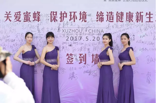 中國蜂產(chǎn)品協(xié)會會長王啉、徐州市商務(wù)局局長臧曉鵬與吳寶劍共同按下水晶球,正式啟動拯救蜜蜂公益行動。開幕式上,還舉行了江蘇師范大學(xué)產(chǎn)學(xué)研基地授牌儀式、江蘇省蜜蜂節(jié)慶文化研究基地授牌儀式,以及拯救蜜蜂公益大使頒證儀式。