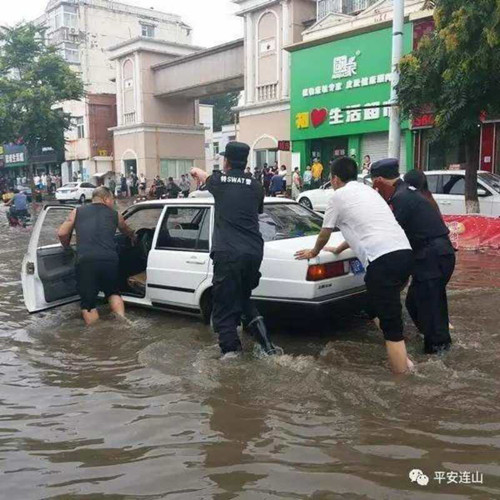 其中較為嚴(yán)重的是連山區(qū)五號崗至化機(jī)大橋路段,路面積水最高達(dá)到70厘米,大量不知情的司機(jī)誤將車開到深水區(qū),出現(xiàn)了水淹滯留現(xiàn)象,給人民的生命財(cái)產(chǎn)安全帶來了嚴(yán)重威脅。 接警后,葫蘆島連山公安分局黨委高度重視,快速反應(yīng),政委王愛民迅速調(diào)集巡特警機(jī)動(dòng)大隊(duì)趕赴現(xiàn)場開展救援工作。