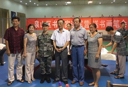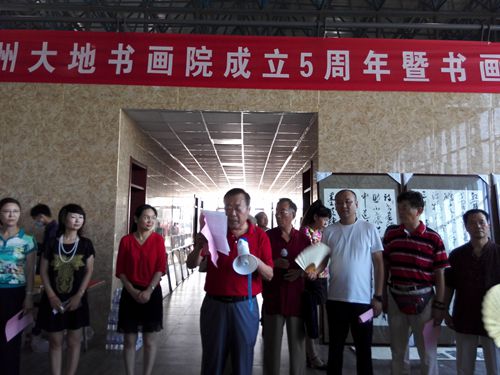 徐州大地書畫院成立于2012928日,其前身是徐州大地書畫會。五年來,在胡立柱、胡德興、紀(jì)鳳桐先后三位院長的領(lǐng)導(dǎo)和全體同仁的共同努力下,積極響應(yīng)徐州市委市政府舞動漢風(fēng),創(chuàng)建詩詞之市的號召,秉持愛國、敬業(yè)、崇德、尚藝團結(jié)、開拓、民主、奉獻的大地書畫院精神,聯(lián)手徐州文化社團,舉辦詩書畫傳統(tǒng)文化活動近百起,活動足跡遍布徐州乃至淮海經(jīng)濟區(qū)。會員們揮毫潑墨,抒發(fā)豪情,走進部隊,走進養(yǎng)老院,走進機關(guān)和工廠,也走進農(nóng)村和學(xué)校,年年免費送春聯(lián)數(shù)千幅,深受百姓歡迎。