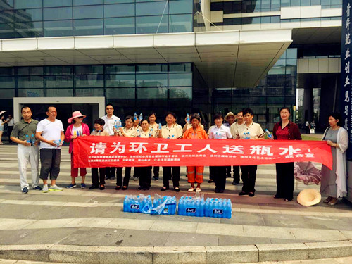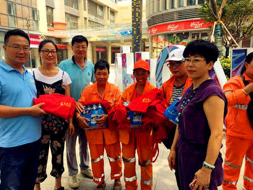 這次由“益佳緣婚姻。家庭服務(wù)中心”“徐州經(jīng)紀(jì)業(yè)商會(huì)全媒體行業(yè)專委會(huì)”發(fā)起了炎炎夏日為環(huán)衛(wèi)工人送清涼活動(dòng);顒(dòng)一經(jīng)發(fā)出得到“巴馬萬福泉水”“徐州經(jīng)紀(jì)業(yè)商會(huì)”“徐州收藏家協(xié)會(huì)”“徐州文化藝術(shù)交流協(xié)會(huì)”和各會(huì)會(huì)員的大力支持。