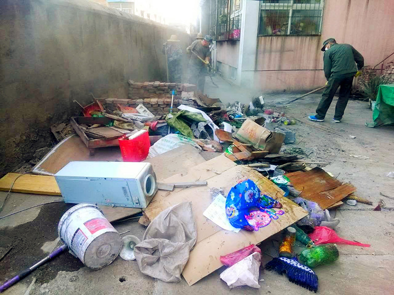 下淀南路一戶居民,以撿拾廢品為生,整整一條隱蔽的巷口被堵了個(gè)嚴(yán)嚴(yán)實(shí)實(shí),甚至居室里也到處堆放著亂七八糟的東西,腐爛的垃圾臭味熏得人們睜不開眼。社區(qū)工作人員做通拾荒老人孩子的工作,將老人帶離,組織人員整整奮戰(zhàn)一個(gè)上午,垃圾裝了20多電動三輪車。另外社區(qū)將6條大道72條巷道包掛全體黨員,社區(qū)全體工作人員包掛32幢樓棟,樓道雜物已清掃完畢,統(tǒng)一裝訂“樓道禁止堆放雜物”標(biāo)志牌。
