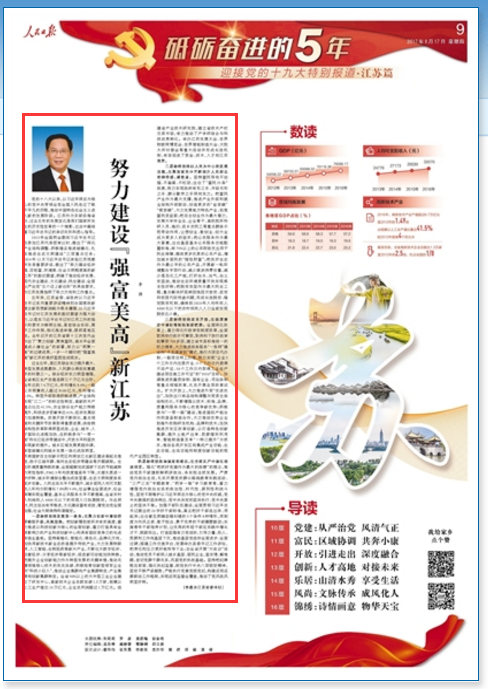 黨的十八大以來,以習(xí)近平同志為核心的黨中央帶領(lǐng)全黨全國人民走過了極不平凡的歷程,推動中國特色社會主義進入新的發(fā)展階段。江蘇作為東部沿海省份,過去五年的發(fā)展變化是我們國家所發(fā)生的歷史性變革的一個縮影,這當(dāng)中凝結(jié)著習(xí)近平總書記的親切關(guān)懷和悉心指導(dǎo)。
