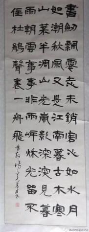 多年來與詩詞書法結(jié)緣,涉獵秦篆漢隸魏碑唐楷,追摹王羲之的《圣教序》,《蘭亭序》,《十七帖》,孫過庭《書譜》,米芾的《蜀素》,《苕溪》,智永、懷素的小草千字文等。先后得到王衛(wèi)軍,翟立新,郭薦,祝培良,臧思勤,劉嵩山等老師親授和點撥。近幾年尤在隸書上用功較深,對《石門頌》情有獨鐘。苦練書法的同時也不忘字外功夫,兼修書法史論文學(xué)詩詞等。