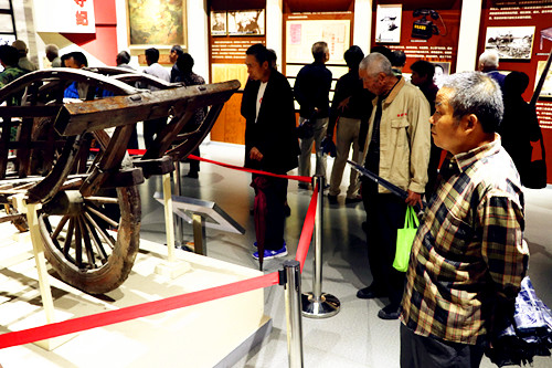 在陳列館,大家耳聞目睹了一幅幅生動的圖片,一份份珍貴的文件、一件件斑駁的實物,一幅幅感人的畫面,在這些珍貴的歷史瞬間中,記載著60多年前那場決定中國命運的血與火的戰(zhàn)場畫卷。廣大人民群眾在這場偉大的戰(zhàn)役中,發(fā)揮了巨大的歷史作用。特別是當(dāng)年543萬解放區(qū)民眾,車輪滾滾,不遠(yuǎn)千里,不怕困難和犧牲,自愿支援戰(zhàn)場時,令人激昂澎湃。