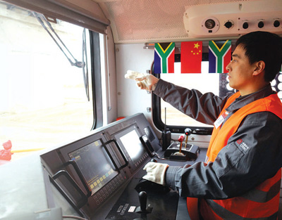 中車大連機車公司駕駛員在試驗將出口南非的內燃機車。