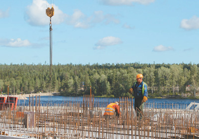 8月15日,在俄羅斯西北部卡累利阿共和國凱姆河畔,工人在別洛巴羅什水電站施工現(xiàn)場工作。別洛巴羅什水電站項目是俄羅斯首個由金磚國家新開發(fā)銀行提供融資支持的項目。