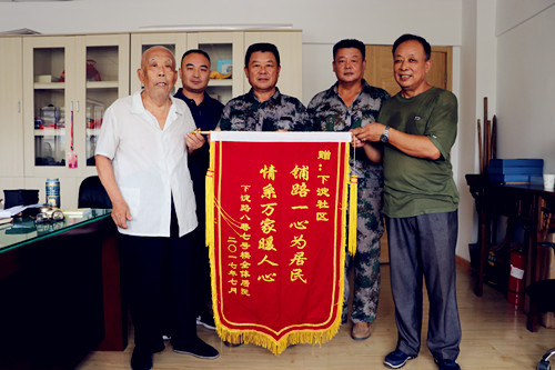 中國(guó)黃淮網(wǎng)訊(老藤)729下午,鼓樓區(qū)豐財(cái)街道下淀社區(qū)80歲的老黨員劉永范和62歲的佟大全專程來(lái)到社區(qū)服務(wù)中心,代表下淀路87號(hào)樓50多戶居民,滿懷感激地向下淀社區(qū)黨委書記付化友送上一面“鋪路一心為居民,情系萬(wàn)家暖人心”的錦旗。再三感謝下淀社區(qū)黨委接地氣,為轄區(qū)老百姓干了一件大好事,說(shuō)今后進(jìn)進(jìn)出出再也不用擔(dān)驚受怕了。