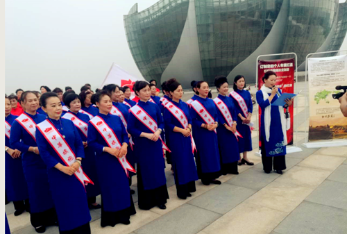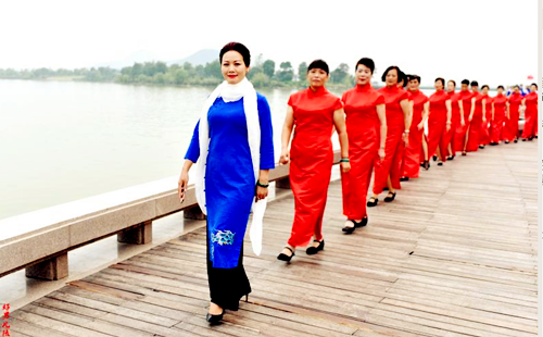中國黃淮網(wǎng)訊(程士凡 邵帥)在金秋送爽,丹桂飄香的季節(jié),徐州云龍湖音樂廳前出現(xiàn)一支身著藍(lán)色旗袍身批彩帶隊伍。她們面帶甜美的微笑,從音樂廳出發(fā)。沿著云龍湖徒步走路線慢步前行,充分展示著東方女性之美,引領(lǐng)中華旗抱文化,成為云龍湖一道亮麗風(fēng)景線,非常引人注目,為大美徐州增加光彩。這就是來自中華旗袍總會的美女們,最大的年齡63歲,最小的40歲,平均55歲。