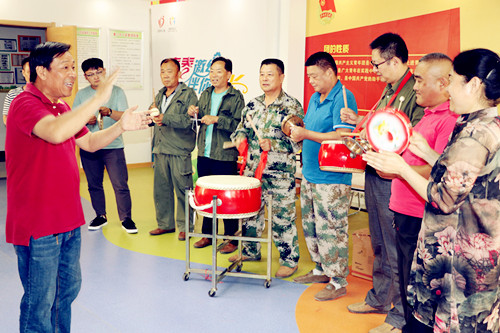 在社區(qū)黨委書記付化友同志(迷彩服)的帶領(lǐng)下,兩委班子成員利用業(yè)余時間,分別拿起了從未接觸過的鑼鼓“家什”,像模像樣的敲了起來。為了增加喜氣洋洋的節(jié)日氣氛,讓節(jié)目更加精彩,社區(qū)黨委還請來了專業(yè)的器樂老師,對他們排練的《歡慶鑼鼓》進行面對面的輔導(dǎo)。