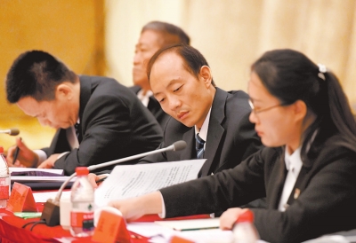 河南團(tuán)代表在認(rèn)真研讀報(bào)告