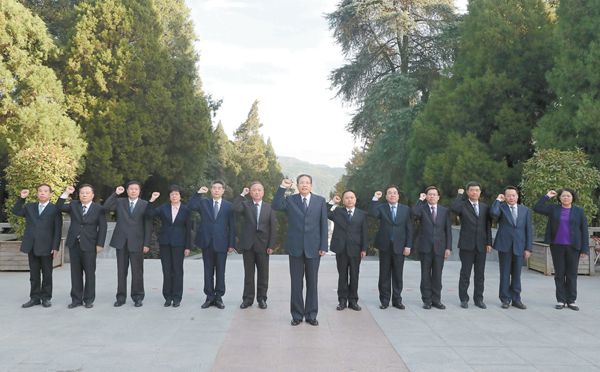 11月6日,在省委書(shū)記李錦斌領(lǐng)誓下,省委常委等在金寨縣革命烈士紀(jì)念塔前,面對(duì)鮮艷的中國(guó)共產(chǎn)黨黨旗,一起重溫入黨誓詞。徐國(guó)康 攝