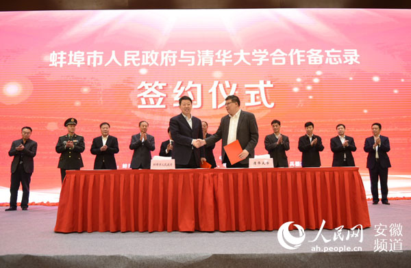 蚌埠市委副書記、市長王誠與清華大學副校長、中國工程院院士尤政,共同簽署蚌埠市人民政府與清華大學合作備忘錄。