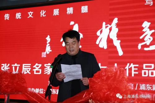中國(guó)黃淮網(wǎng)據(jù)上海浦東書畫院報(bào)道:1215日上午,由川沙新鎮(zhèn)人民政府和浦東新區(qū)美術(shù)家協(xié)會(huì)主辦,浦東新區(qū)川沙文化館、上海浦東書畫院承辦的“傳統(tǒng)文化展精髓,寫意精神促發(fā)展”張立辰名家工作室七人作品展開幕式在上海自貿(mào)區(qū)國(guó)際藝術(shù)品交易中心隆重舉行。中國(guó)美術(shù)學(xué)院教授、中國(guó)畫系副主任、博士碩士研究生導(dǎo)師劉海勇,川沙新鎮(zhèn)黨委書記、人大主席王小君,黨委委員郁晉杰,黨建辦主任苑學(xué)武,浦東新區(qū)文廣影視局文化處處長(zhǎng)聶影,浦東新區(qū)美術(shù)家協(xié)會(huì)主席徐立銓等領(lǐng)導(dǎo)和藝術(shù)家出席開幕式,來自全國(guó)各地和浦東新區(qū)的80余名藝術(shù)家、美術(shù)愛好者參加了開幕式。