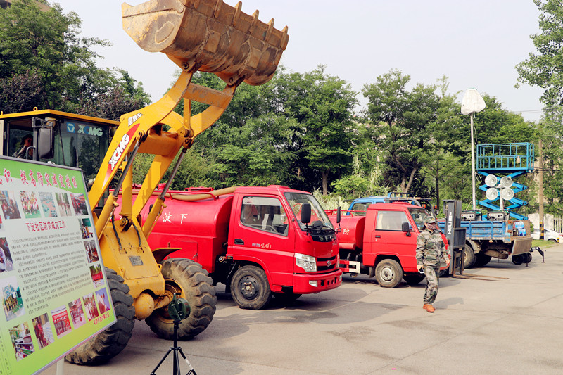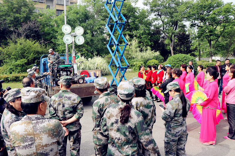 在活動現(xiàn)場,社區(qū)志愿者向廣大群眾發(fā)放了有關(guān)防災(zāi)減災(zāi)宣傳教育資料,并進(jìn)行防災(zāi)減災(zāi)知識咨詢,廣泛宣傳防災(zāi)減災(zāi)法律法規(guī)和基本知識。下淀社區(qū)曾榮獲“全國綜合減災(zāi)示范社區(qū)”稱號,是一個安全意識強(qiáng)、救援設(shè)施較為齊全的社區(qū),50余人的救災(zāi)隊伍,為清一色的黨員青年志愿者。為了這次演練,社區(qū)召開了幾次會議,做了大量的準(zhǔn)備工作。在演練中,隊員們統(tǒng)一著裝,帶去了1輛大面包車,兩輛消防車,1輛皮卡,1輛鏟車,1輛叉車;50千瓦的大發(fā)電機(jī)1臺、照明車2輛、報警器1臺、小發(fā)電機(jī)2臺等應(yīng)急設(shè)備。